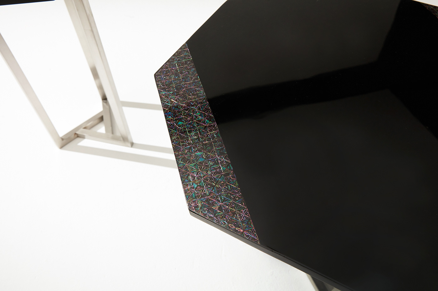 OCTAGON B, Wood, Mother-of-Pearl, Metal, 55 x 55 x 55 cm